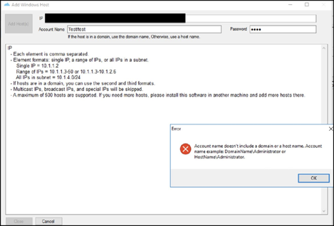 When adding Windows remote hosts to an Agentless Data Collector, occasionally the error output will include a WMI error, usually along with an error code that identifies the issue.