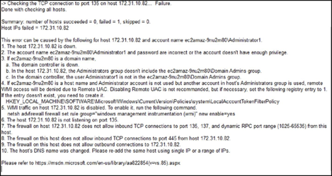 The Cloudamize ADC sends WMI commands to remote Windows hosts via the Remote Procedure Call RPC service. When the ADC is unable to use this service, this error message may be output. There are two troubleshooting steps to check in this case:
