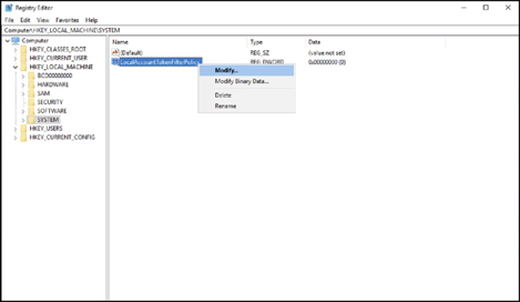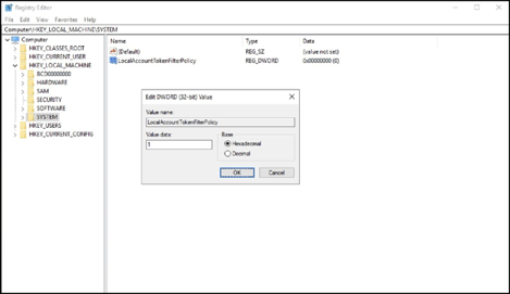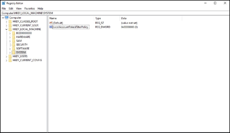 HKEY_LOCAL_MACHINE\SOFTWARE\Microsoft\Windows\CurrentVersio n\Policies\system\LocalAccountTokenFilterPolicy