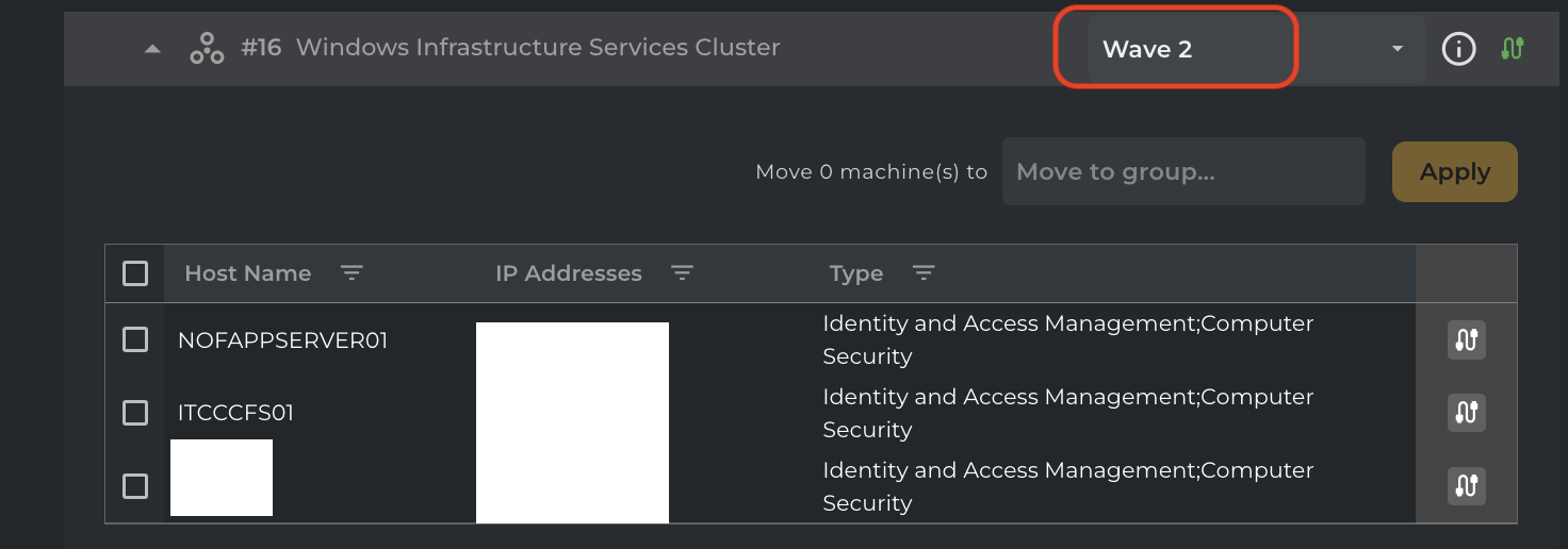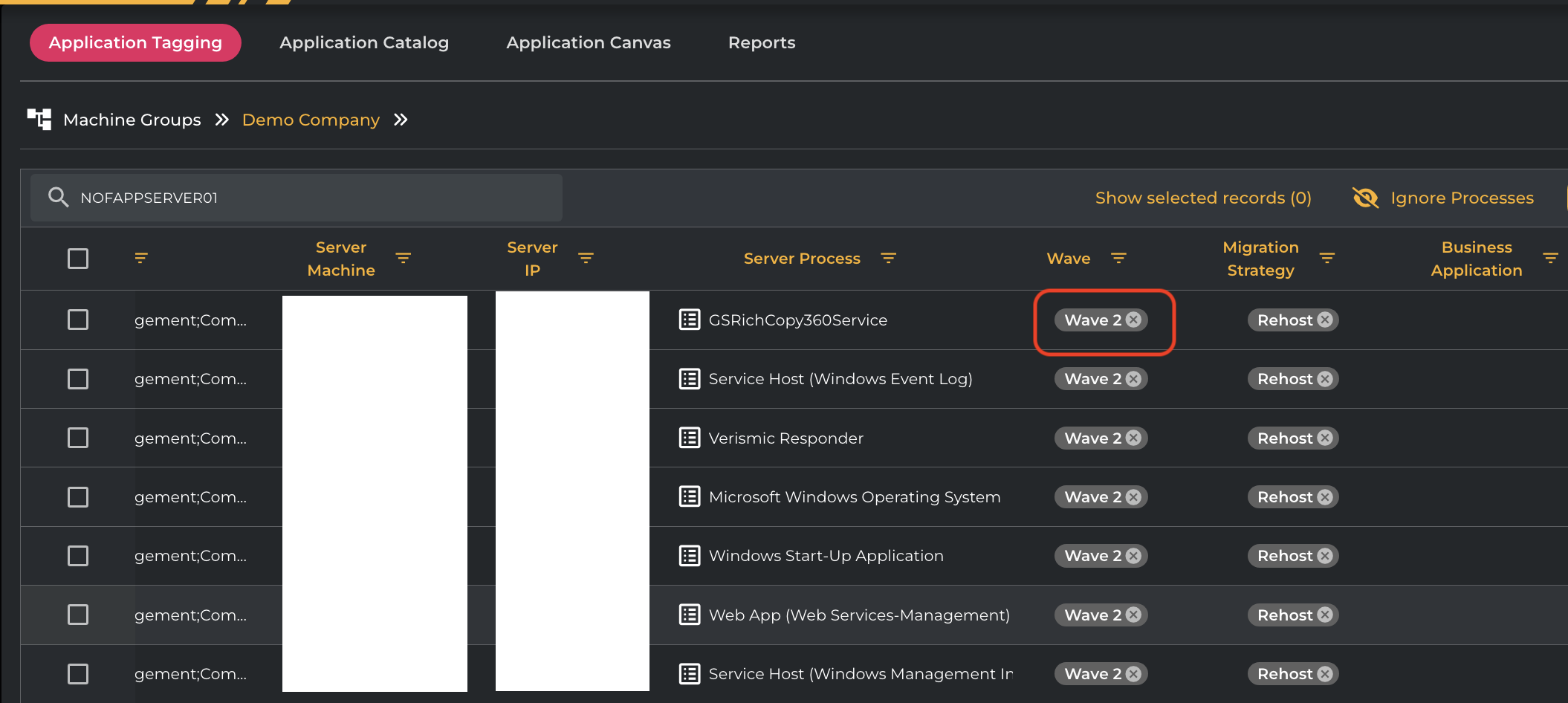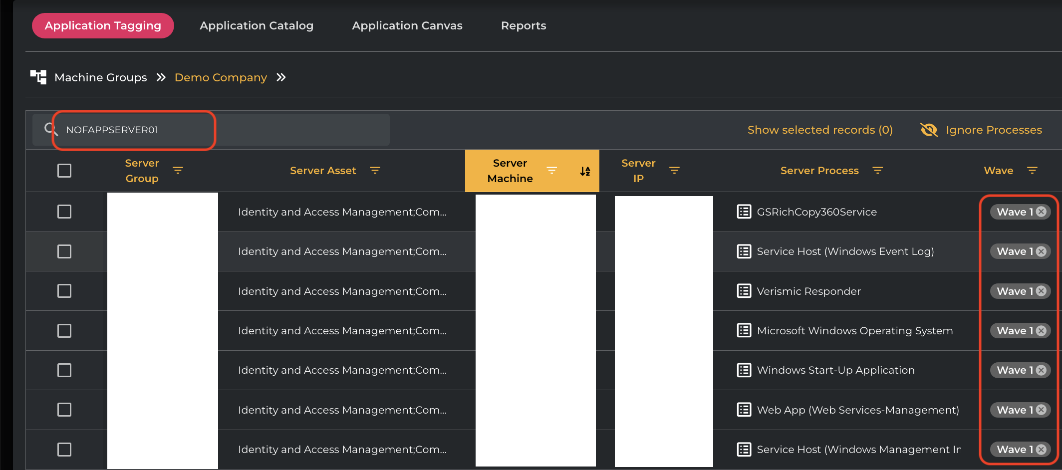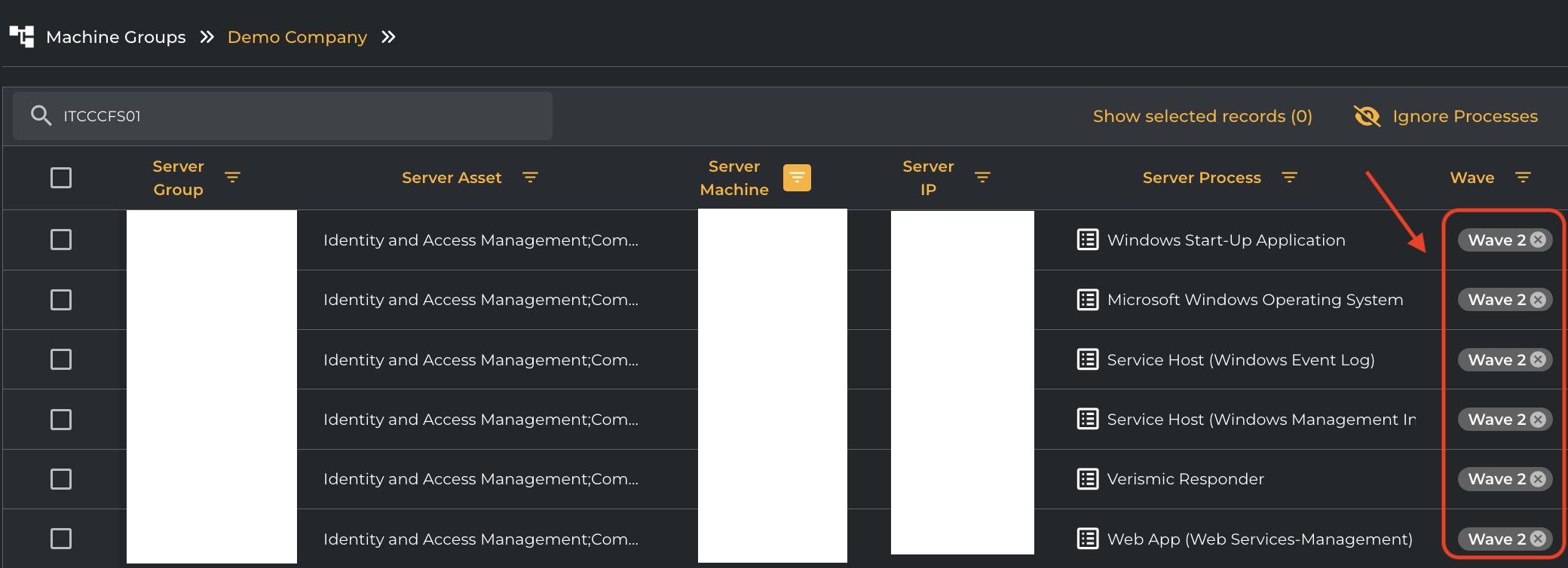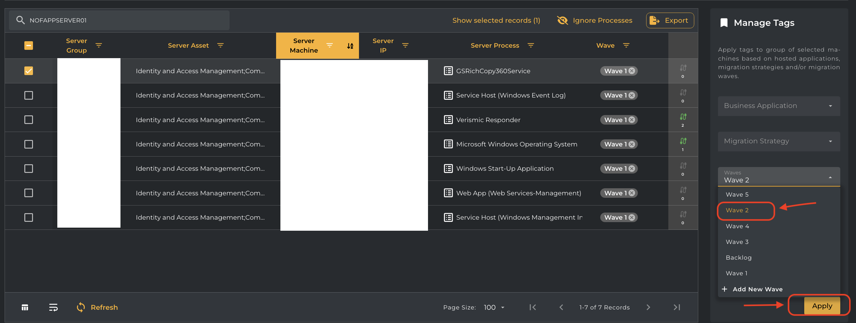 Navigate to App Tagging any time and apply a different Wave tag to any Process on a machine that belongs to Move Group, the updated Wave tag will automatically be applied to: