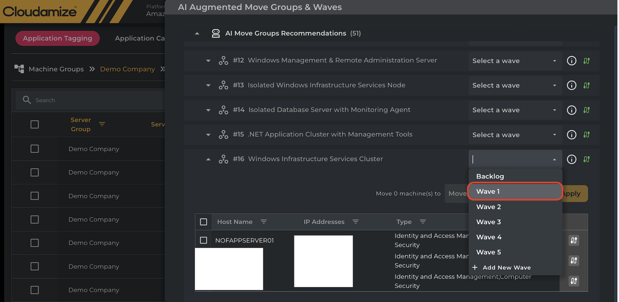 To streamline migration planning, Cloudamize now features Wave Tag Sync, ensuring that tags applied within the AI-Augmented Auto-Grouping section are automatically propagated to App Tagging.