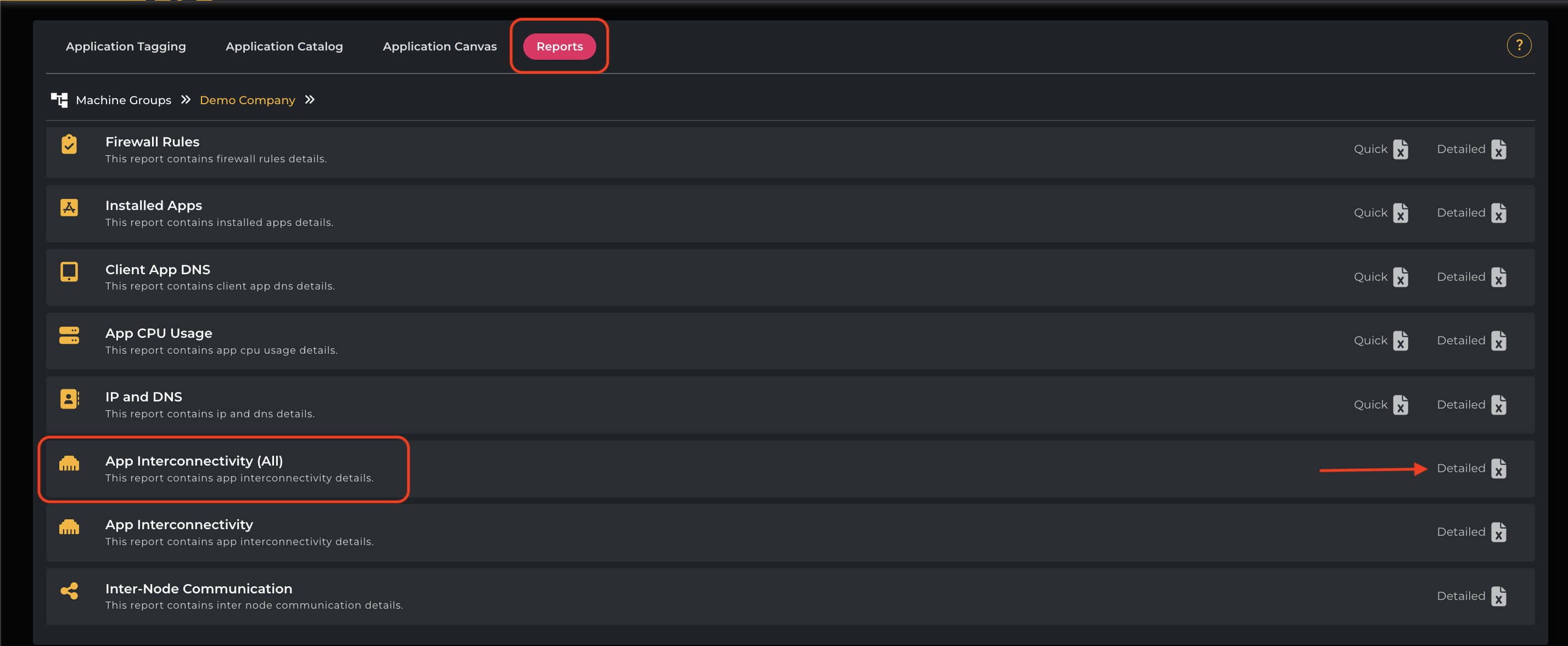 Click on App Interconnectivity(All) → Detailed to download the report.