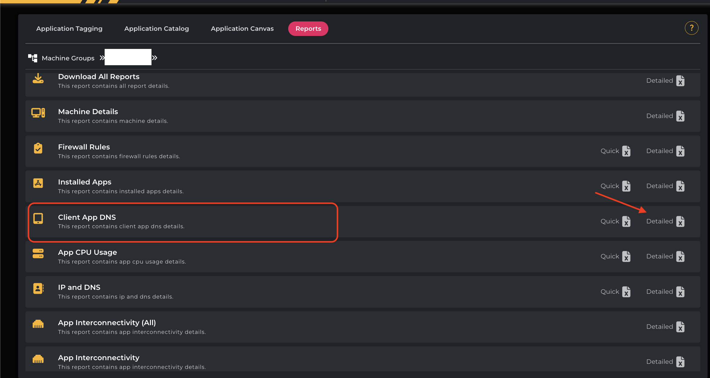 Click on Client App DNS → Detailed for Client App DNS to download the report.