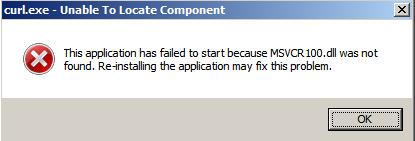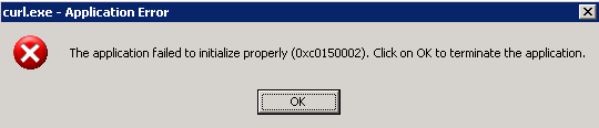 Application launch error message for curl.