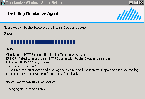 During the installation of the Cloudamize Windows Agent, you see this error: