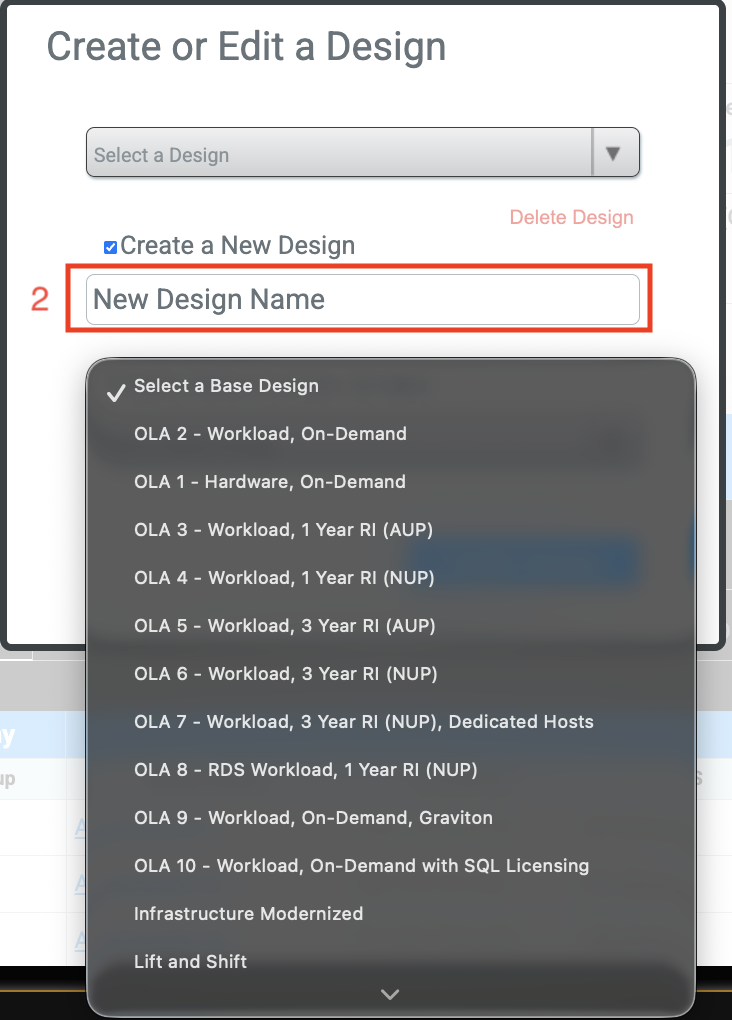 Next, 3 select a base design that you wish to use as a starting point, and ‘click’ Create Design