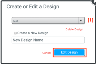 To edit an existing design, [1] select the design from the dropdown menu and click’ Edit Design