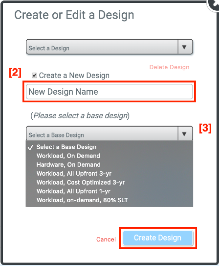 Next, [3] select a base design that you wish to use as a starting point, and ‘click’ Create Design