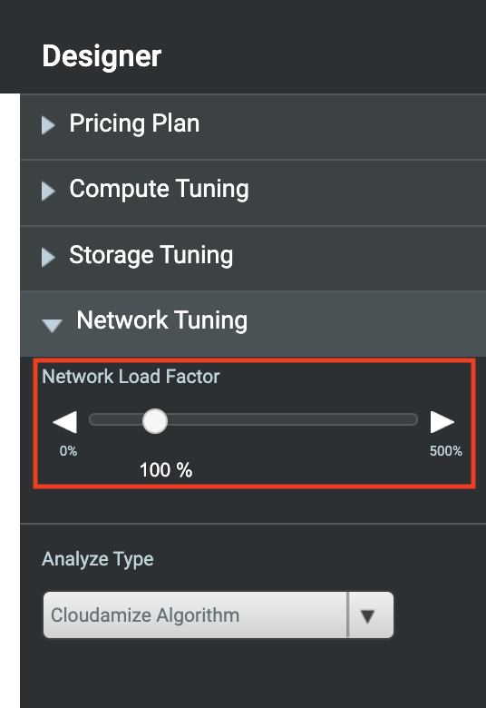 You can customize the network load factor by adjusting the slider under the Network Tuning portion of the Designer controls