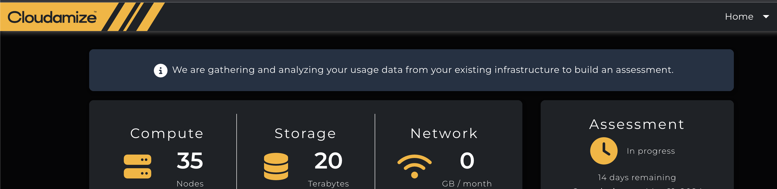 By default, Cloudamize collects data for 11 days with 3 days of processing time for a total of 2 weeks from Assessment start to Results Delivery. The duration of data collection can be extended, provided it’s within the scope of the total assessment duration.