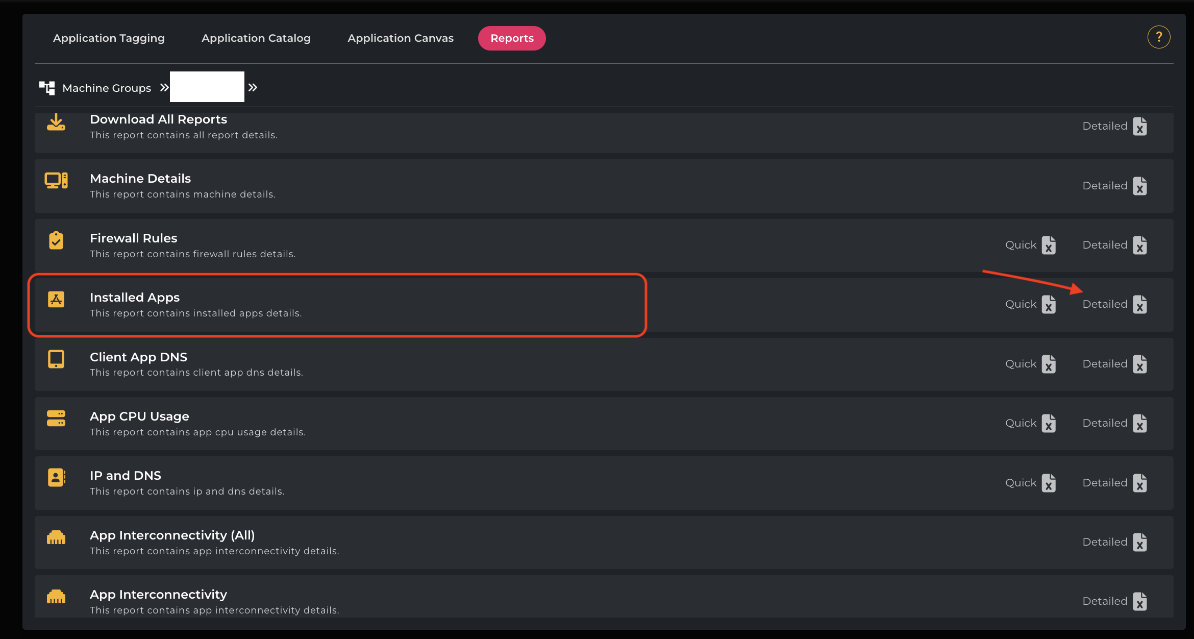 Click on Installed Apps → Detailed to download the report.