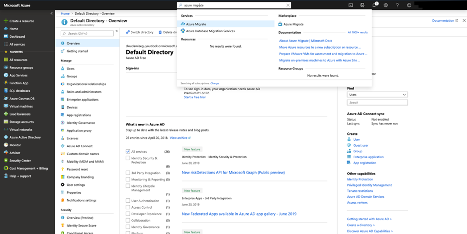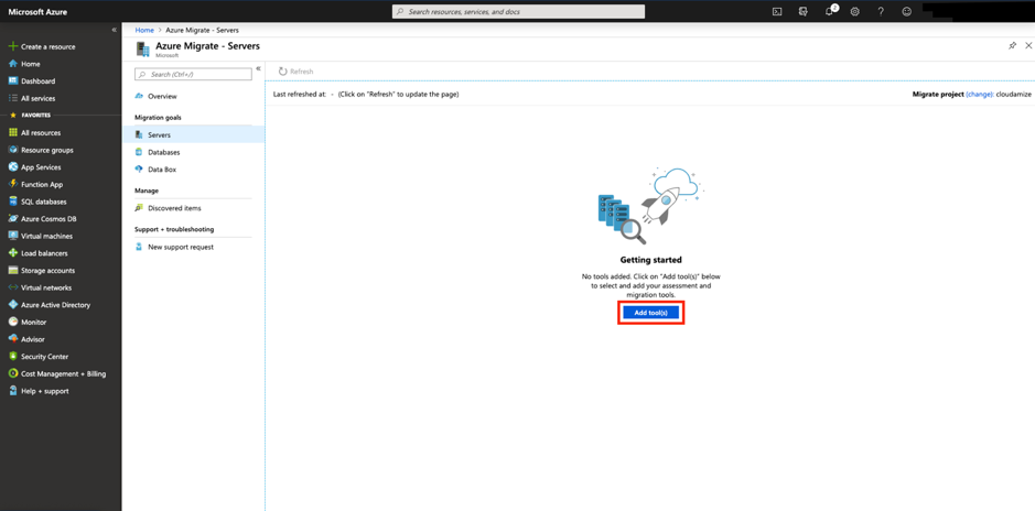 Click on AzureMigrate tab in Migrate your Environment screen.