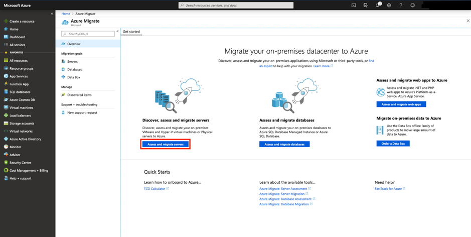 On the Azure Migrate portal, click on Assess and migrate servers.