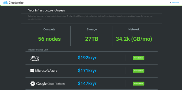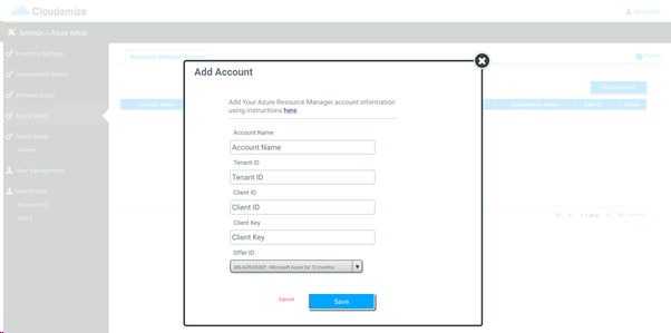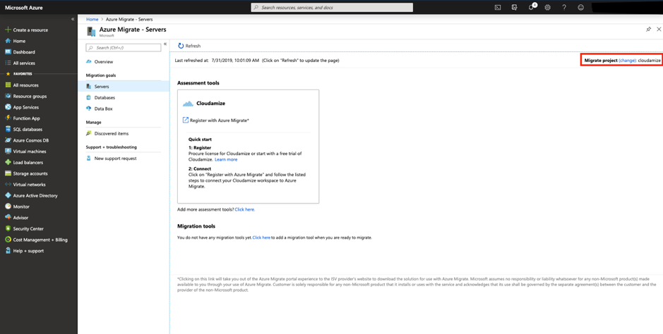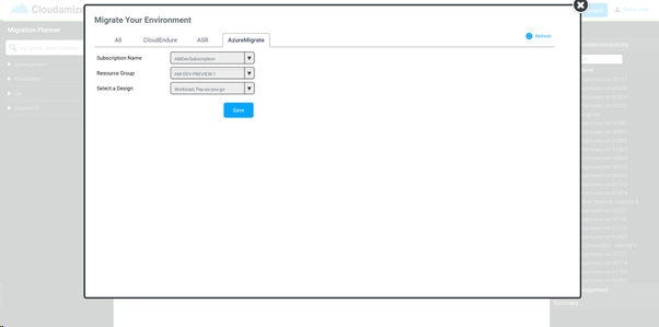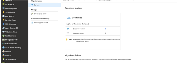 Note: Azure Migrate feature is not currently live on Cloudamize