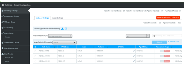All the machines that are assessed are populated in the grid. You can still change the Design and data will populated accordingly.