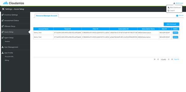 Subscriptions mapped to the Client will be fetched and displayed in Azure setup page.