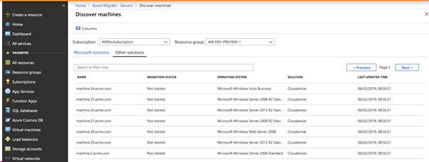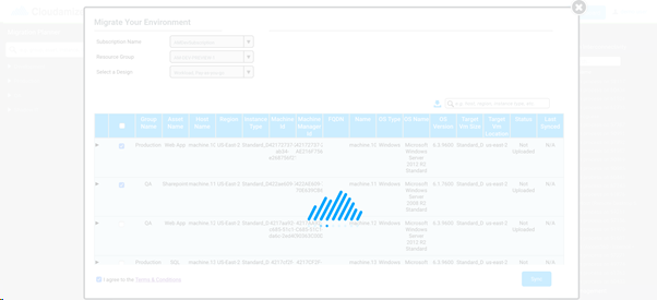 Select the subscription and resource group for which solution is created in Azure portal from the drop downs Subscription Name, Resource Group, select the design which has the machines you want to migrate from Select a Design and click on Save.