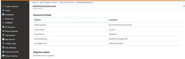 Go to Azure portal and click refresh on Servers tab. Successfully uploaded Numbers will be populated against Discovered and Assessed servers. Click on Discovered servers to view the machine details.
