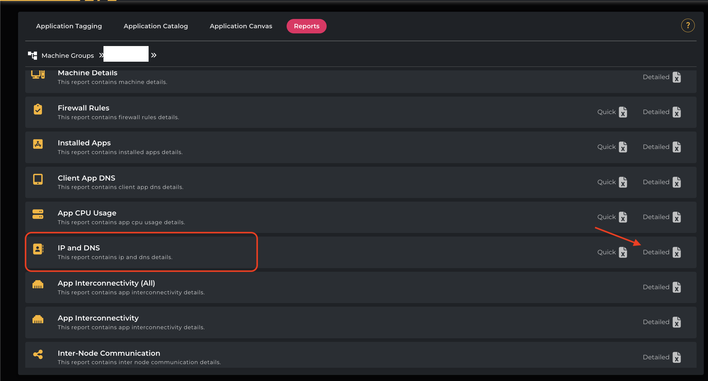 Click on IP and DNS → Detailed to download the report.