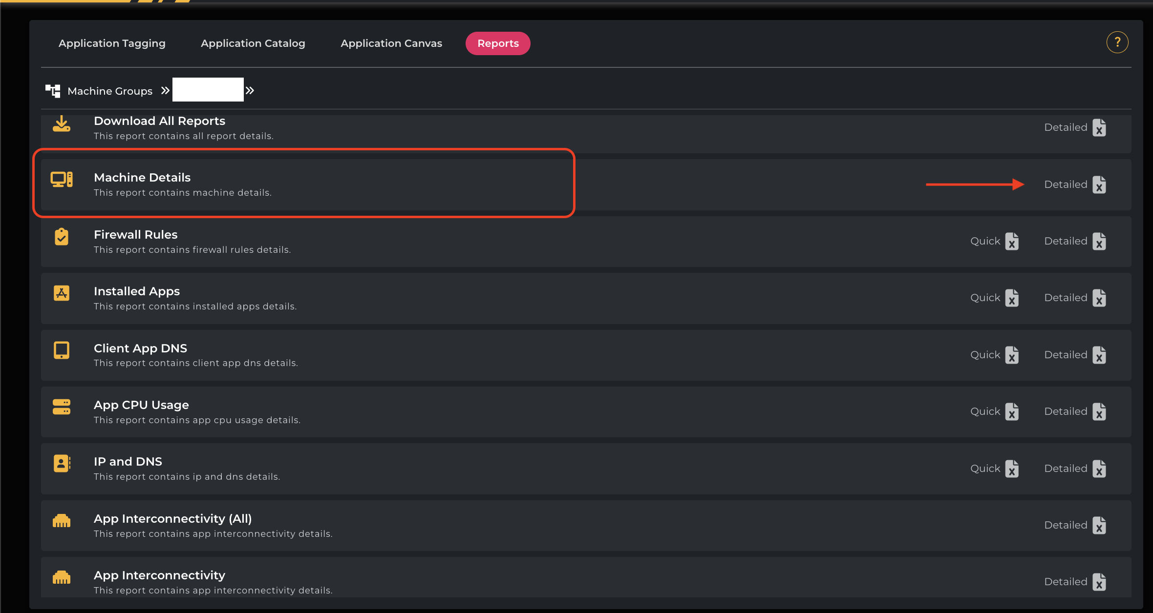 Click on Machine Details → Detailed to download the report.