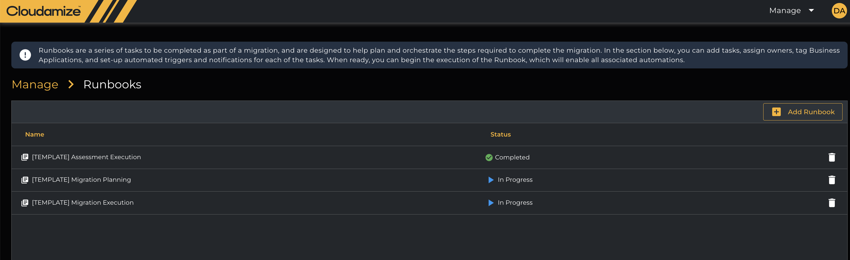 Designed to help manage the migration process, Runbooks allow users to define and track the tasks related to migrating on-premises servers to the cloud.