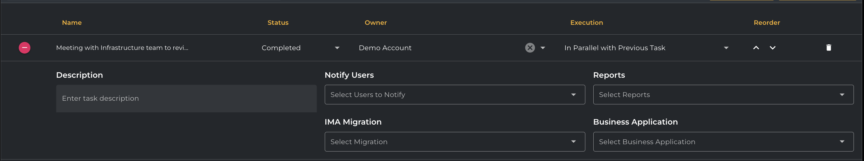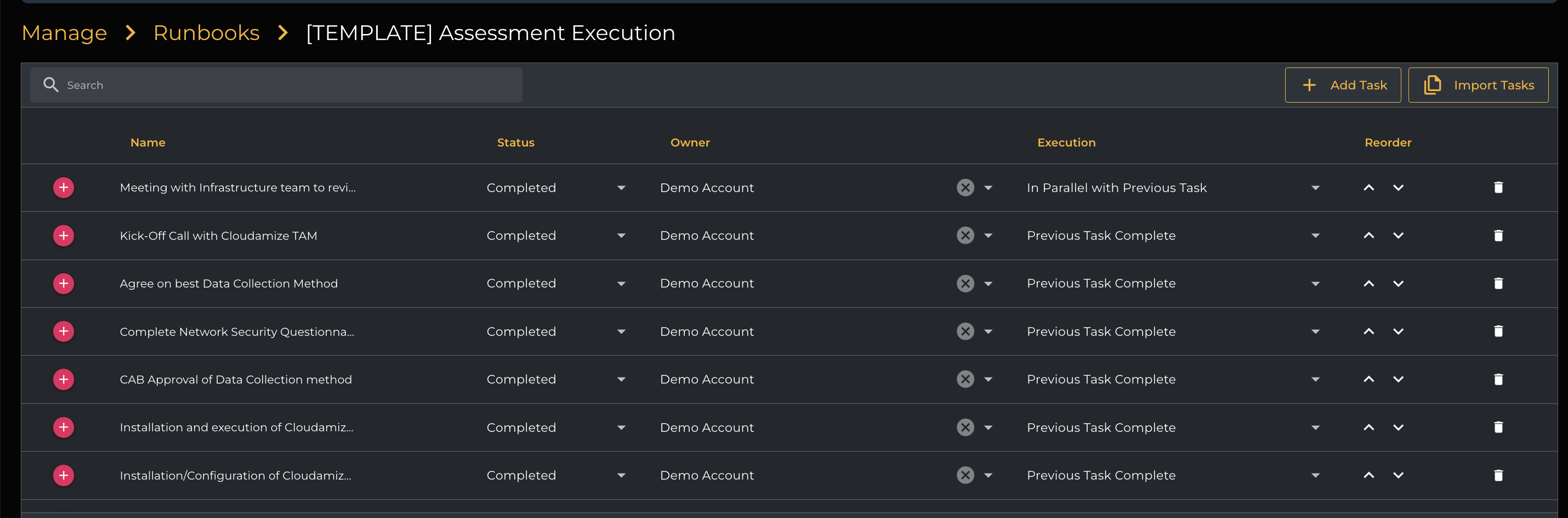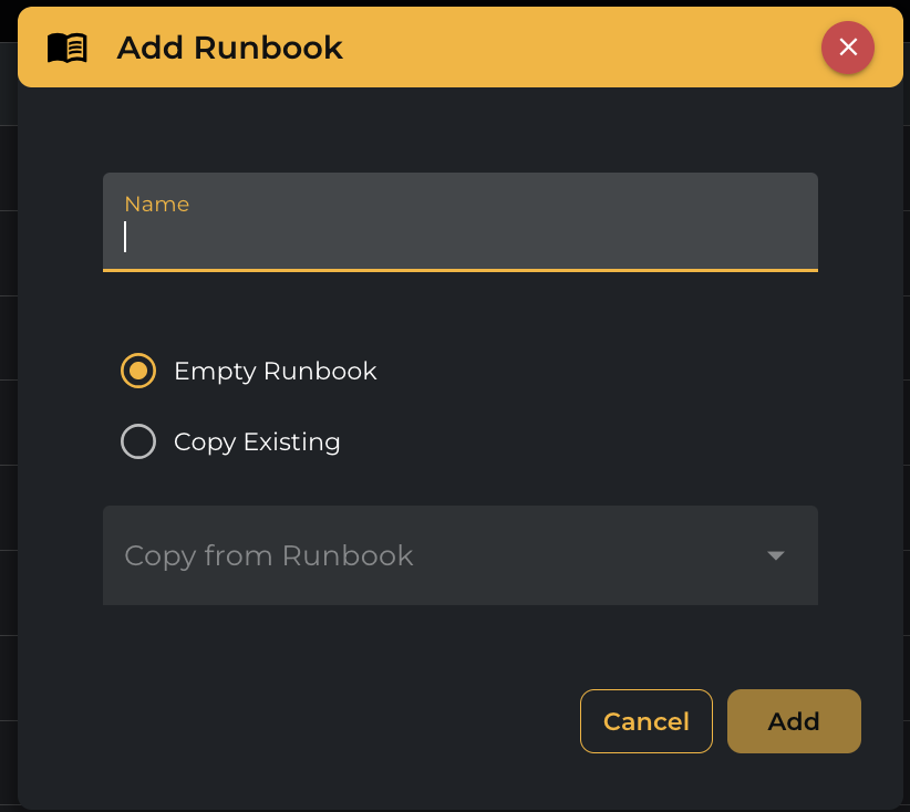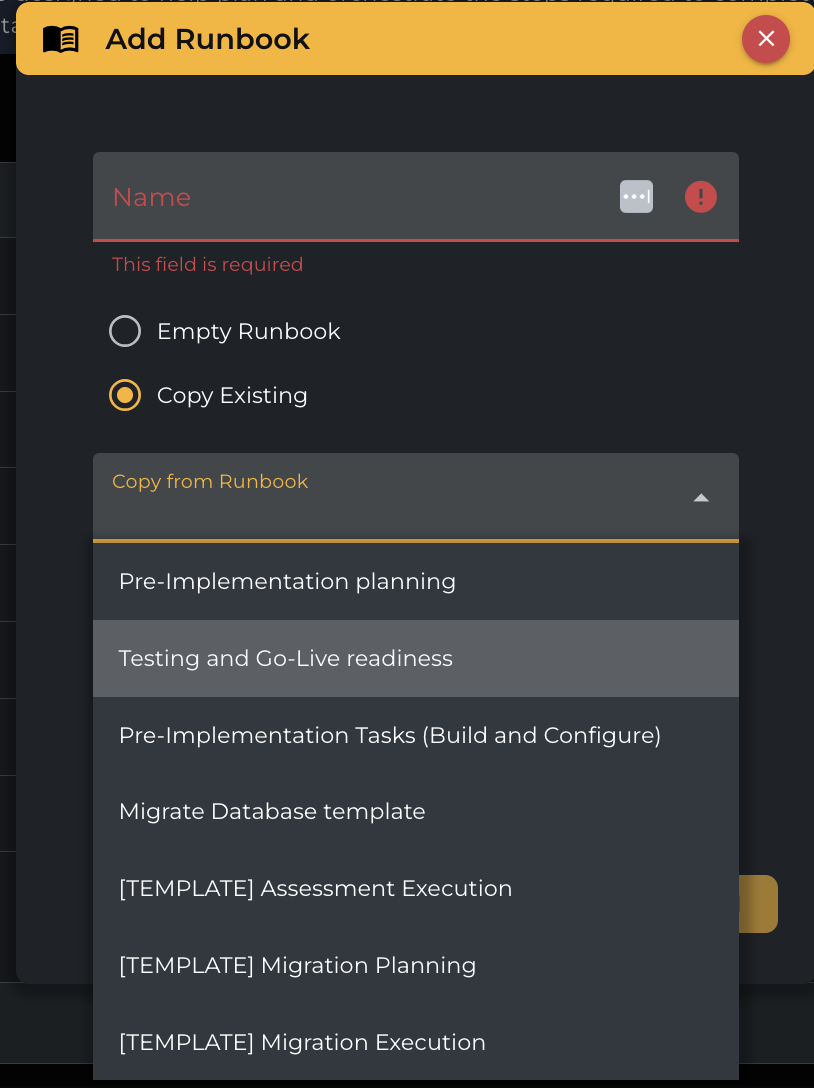 You can also copy from an existing Runbook using the Copy from Runbook drop-down option, as shown below. When copying from an existing runbook, all the task statuses will be set to “Not started.”