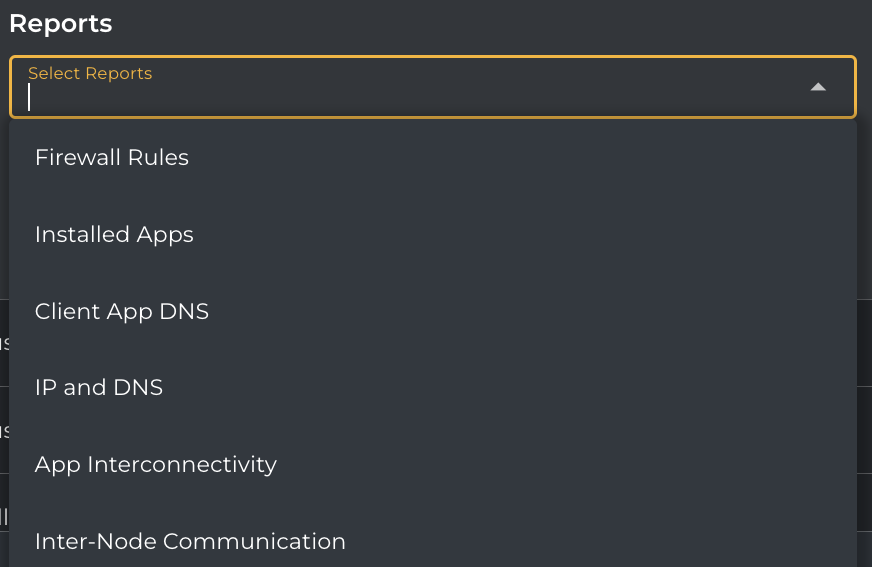 ReportsThe Reports section allows you to select multiple reports of a Migration Planner through a drop-down option, as shown below