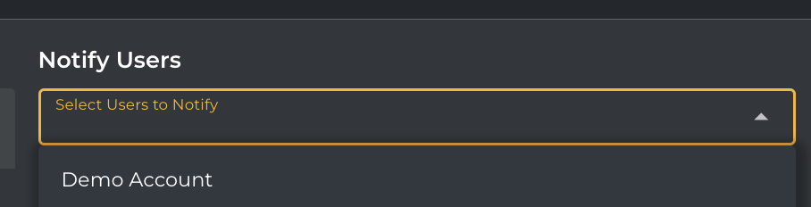 Notify UsersIt has a section to Notify Users and will allow you to select the users from the drop-down menu.