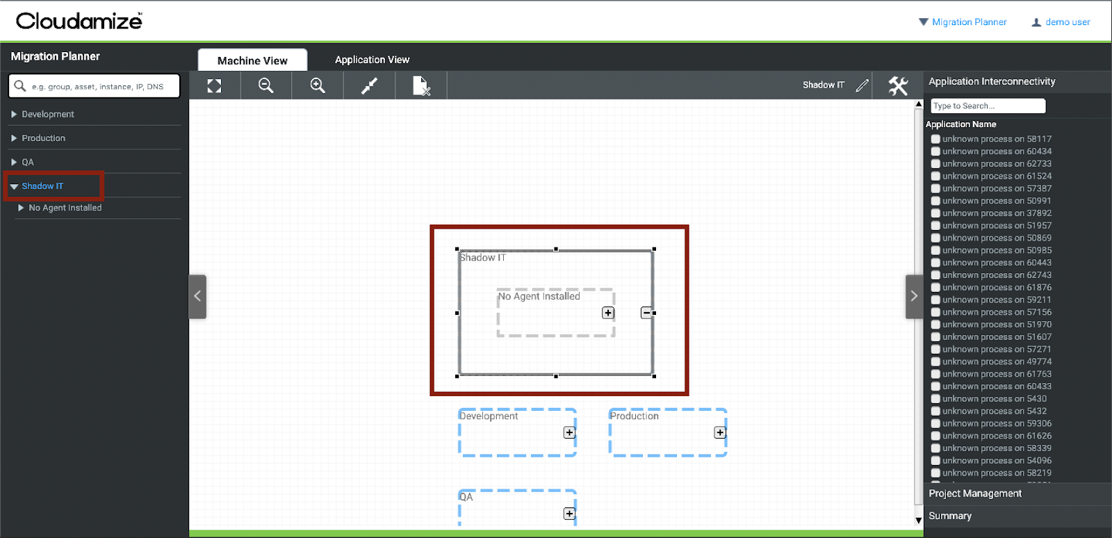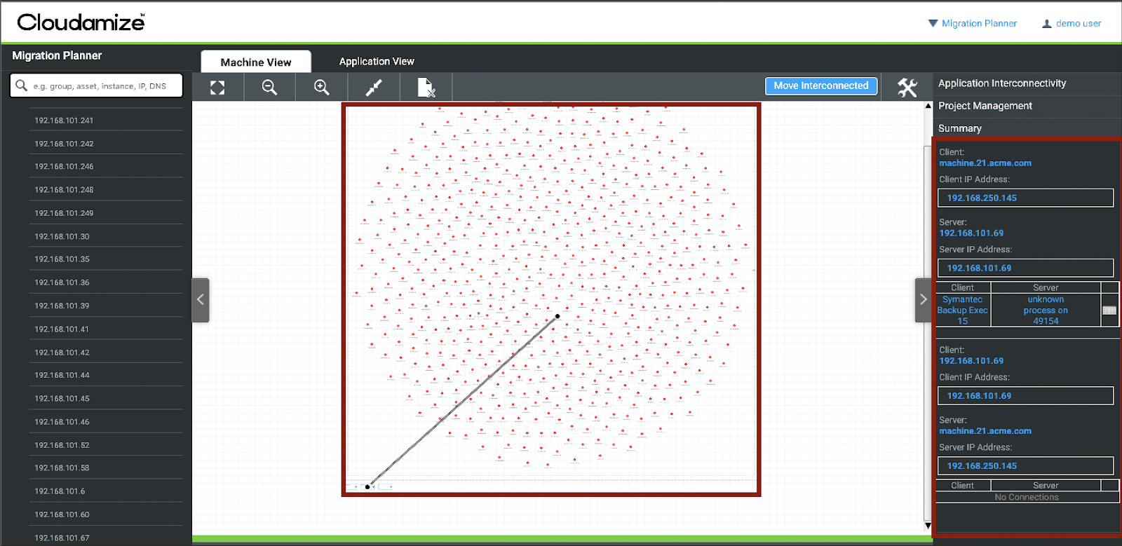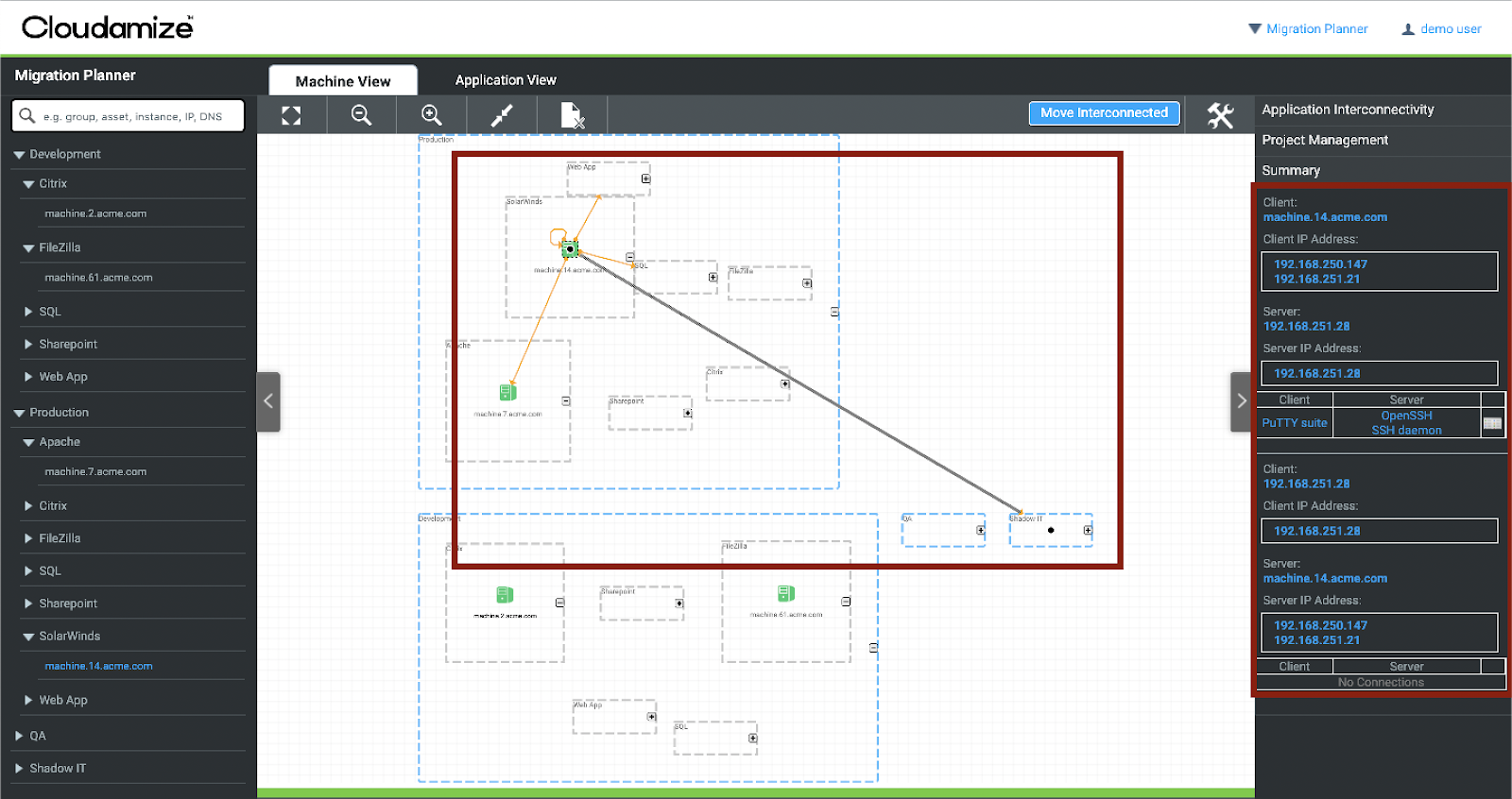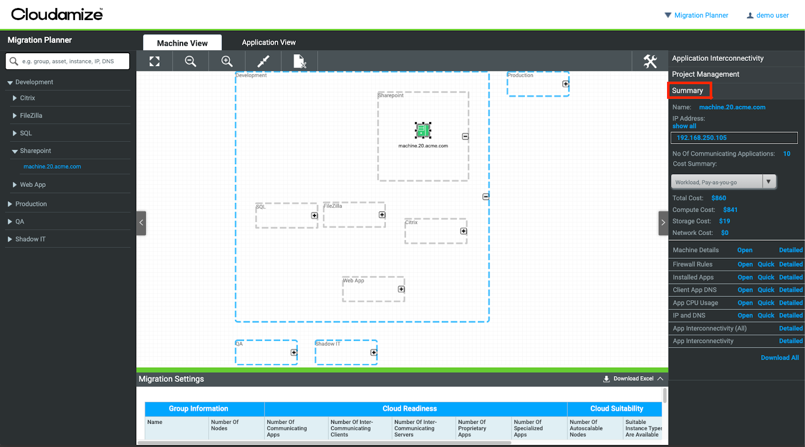 The Migration Planner will assist you in creating and executing a migration plan by visualizing all available machine- and application-level data.