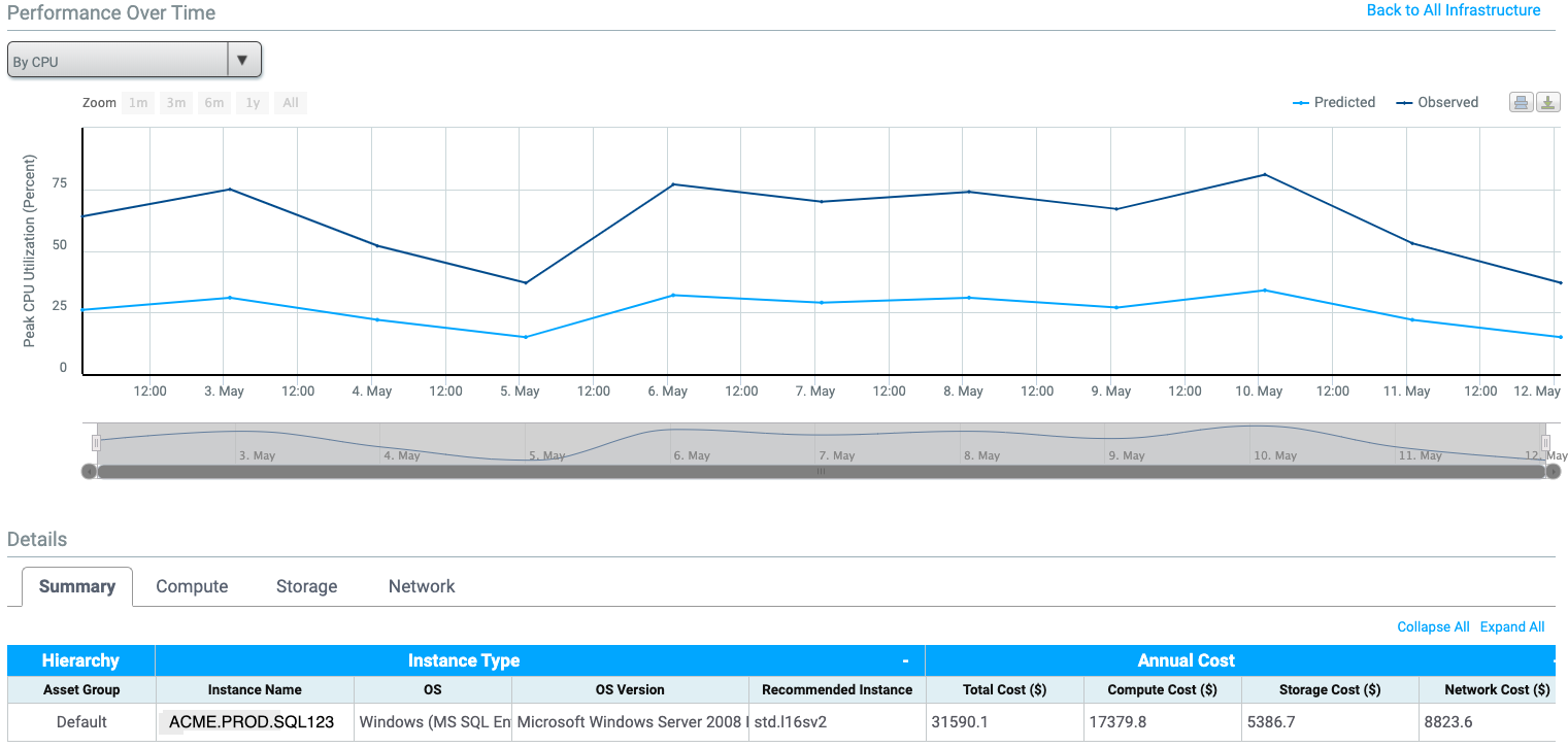 Using the Migration Planner, Cloudamize now provides a more in-depth look at the SQL Servers found in the assessed infrastructure. The information provided within the SQL Server and License Usage machine allows you to gain further insight into the on-premise licensing data and view a comparison of host-based versus VM-based SQL licensing. This feature also provides an overview of necessary on-cloud SQL licensing.