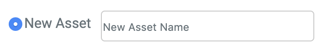 If you want to create a New Asset, click the Circle next to New Asset, and then add the name to the box. | ![]() |