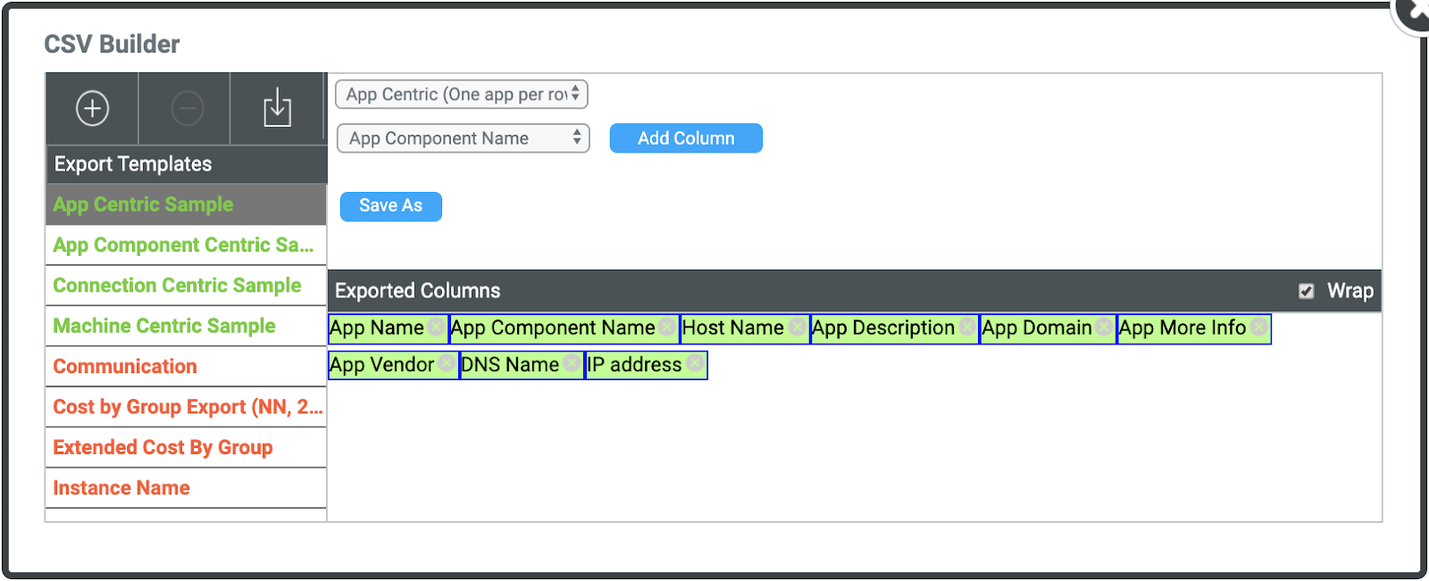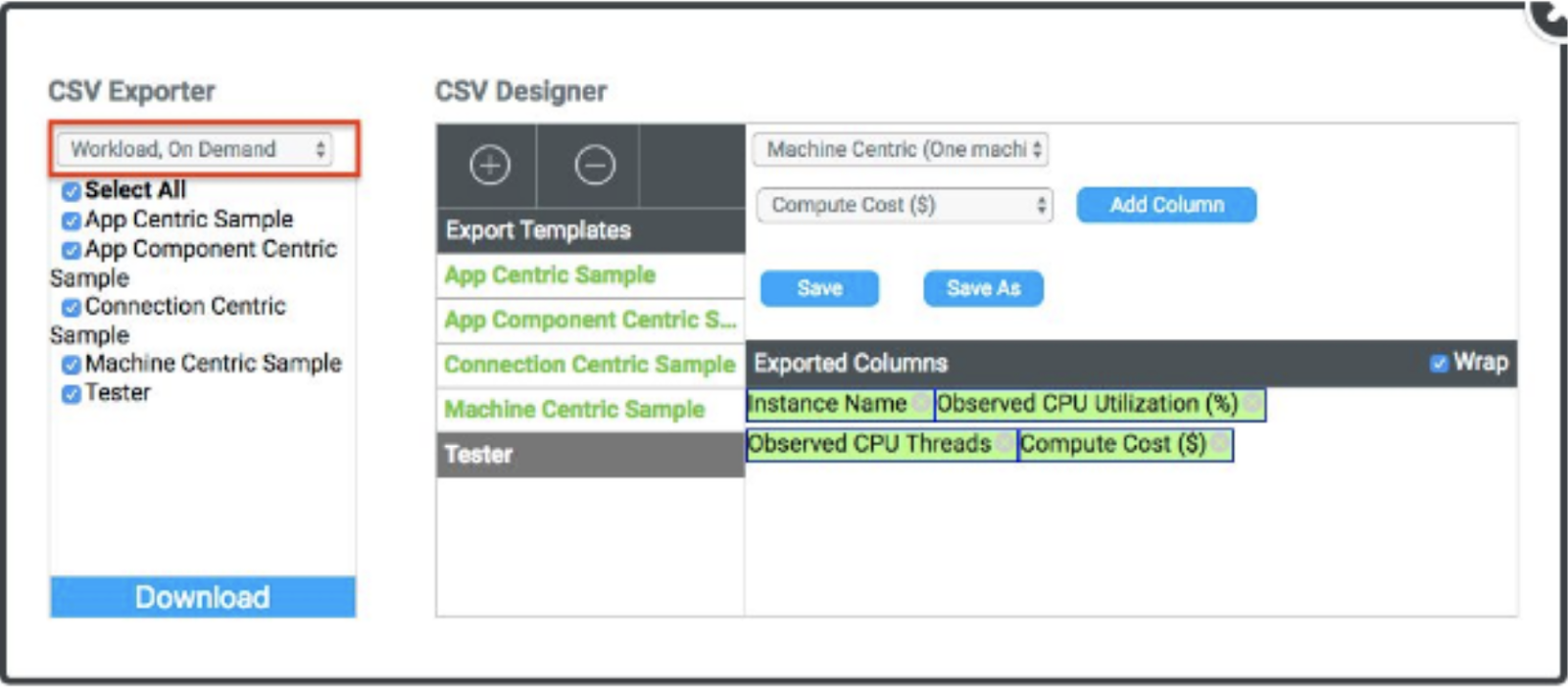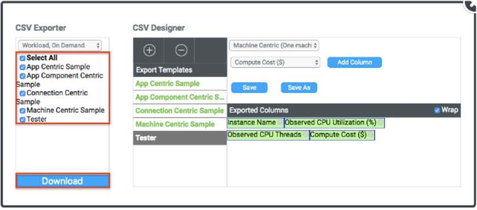 The Cloudamize CSV Builder allows you to create custom CSV outputs to provide you with the data which is most important to you. You can choose the categories to display as columns in the downloadable CSV output and you can reorder the columns to fit your needs.