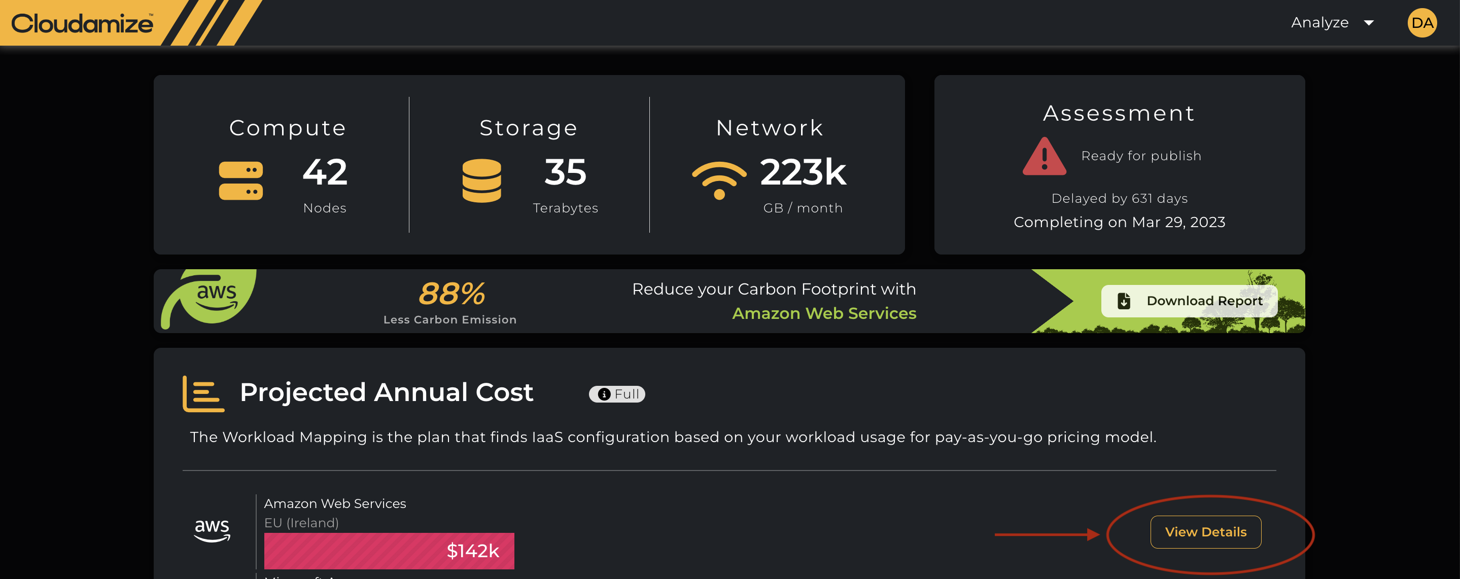 Login to the console: https://console.cloudamize.com/#/