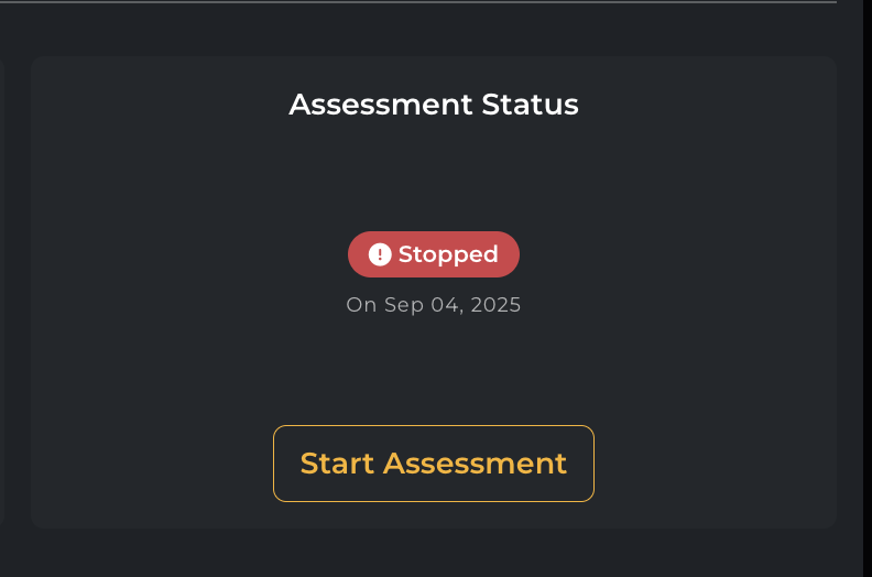 If your assessment is stopped for any reason after the start, you can see this here and start the assessment again.