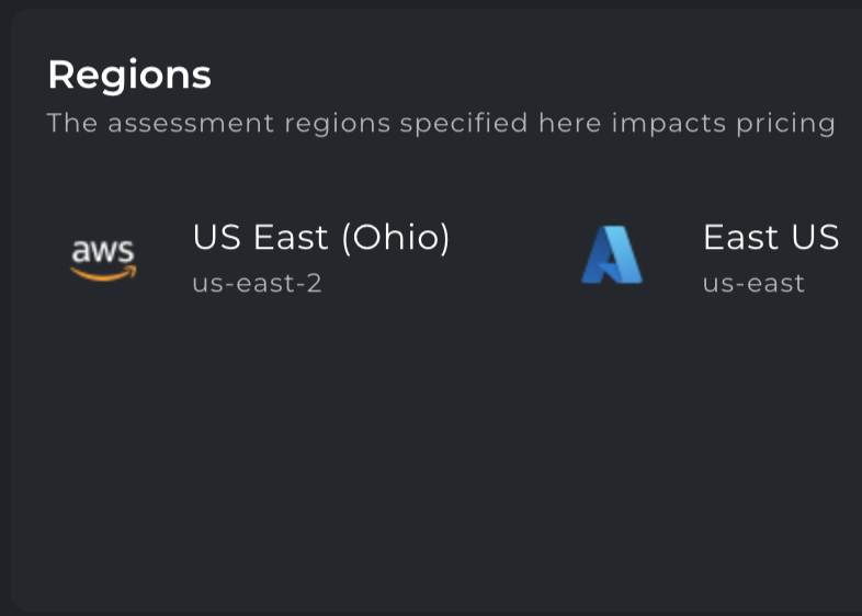 Note that this refers to the IaaS provider assessment region specified here, which impacts TCO pricing (where Cloudamize provides recommendations for each IaaS provider), not the data collection region (where Cloudamize is storing and processing data).