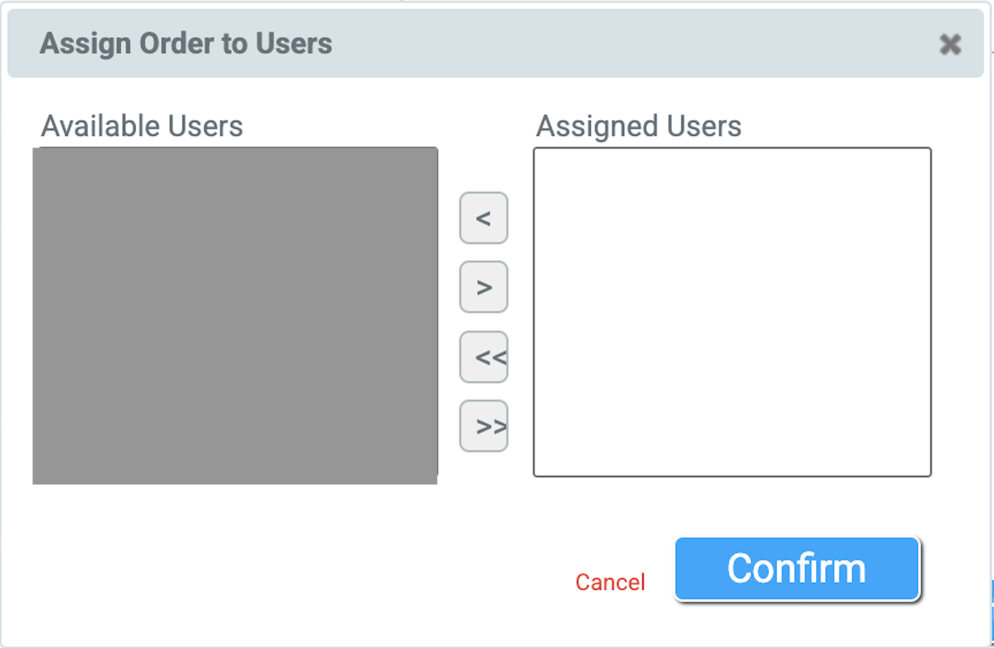 Available Users and Assigned Users. Use the arrows to move users from one category to another, and click Confirm to save the changes.