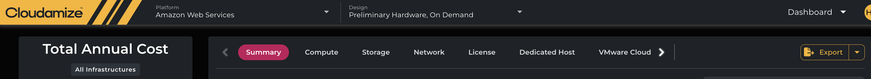 If the Preliminary Hardware results are ready, you will see the summary details as well as the TCO for the chosen cloud provider(s), as seen in the following image: