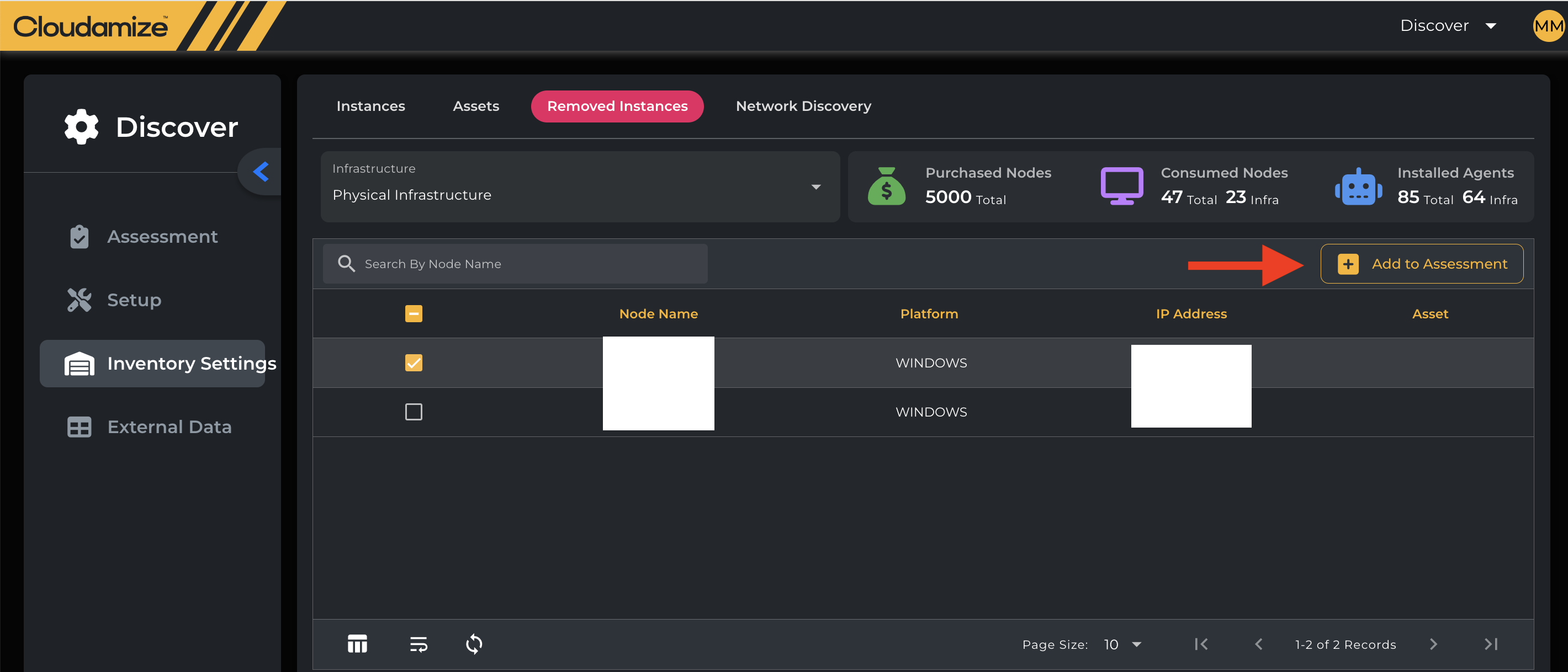 If you need to re-add an instance that has been removed from the assessment, you can find a list of removed instances in this tab. To re-add, check the box next to the desired server(s) and click “Add to Assessment.”