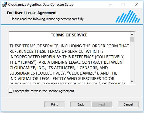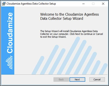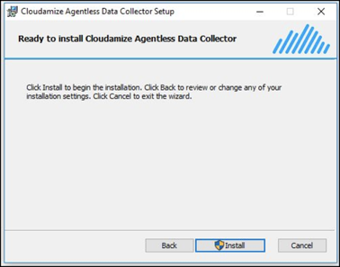Click "Next". Click Install to begin the Cloudamize Agentless Data Collector installation