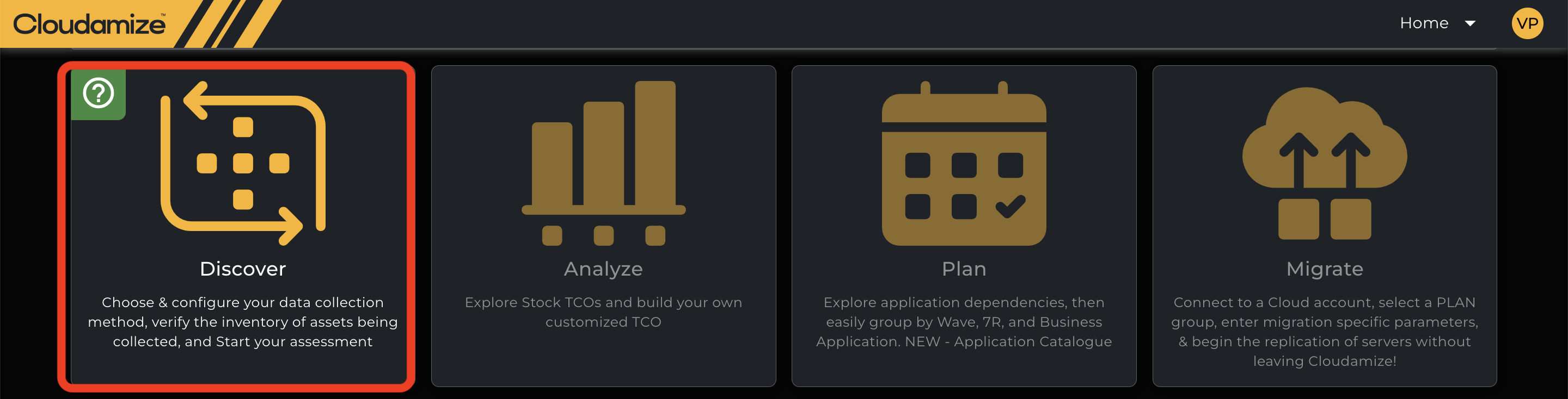 As soon as the user is logged into the console, it lands with the below page and click on the discover Icon as shown in the screenshot below and then → Setup → VMware Setup