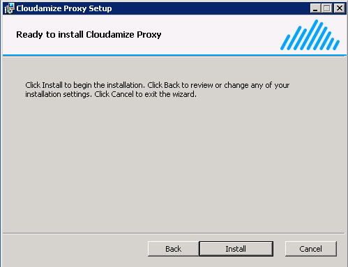 The Cloudamize Proxy is an auto-start service that has no user interface or user inputs from the command line. You can check the status of the proxy from services.msc or the VMware tab in the Cloudamize application.