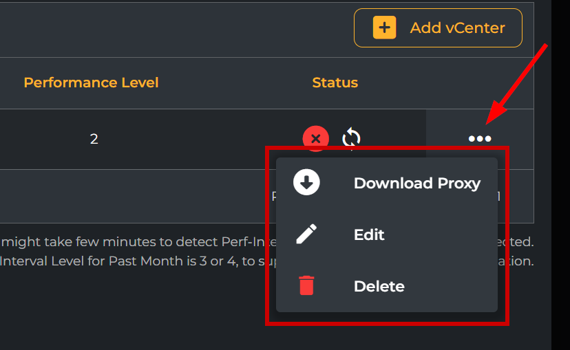 Under Setup, you will see the option “VMware Setup”. Click the button and then click on Add vCenter, then enter a name for the vCenter, the IP address (public or private), and the read-only credentials just created.